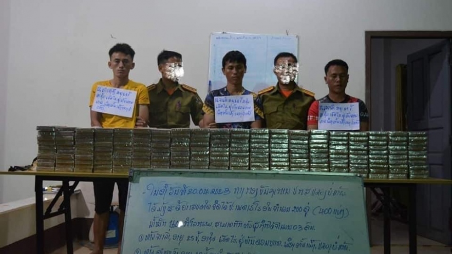 VOV.VN - Công an tỉnh Bokeo, Bắc Lào cho biết, lực lượng phòng chống tội phạm ma túy của tỉnh này vừa triệt phá đường dây vận chuyện ma túy gồm 400 bánh heroin có trọng lượng160 kg.