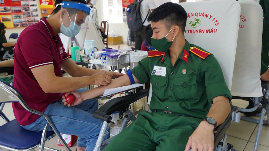 VOV.VN - Sáng 29/7, tại TP.HCM, Trường Sĩ quan Kỹ thuật Quân sự phối hợp Bệnh viện Quân y 175 tổ chức Lễ phát động phong trào hiến máu tình nguyện năm 2021, với chủ đề "Chung tay đẩy lùi dịch bệnh Covid-19".