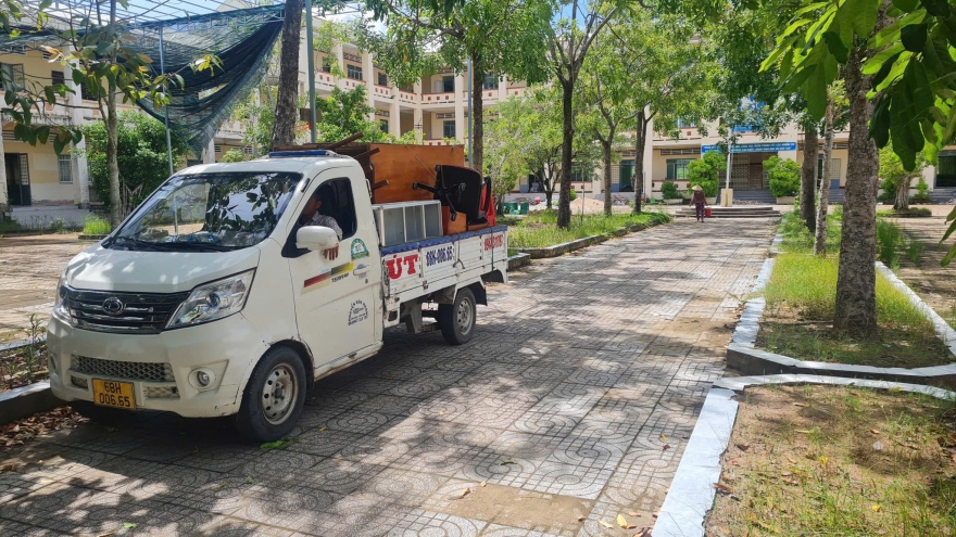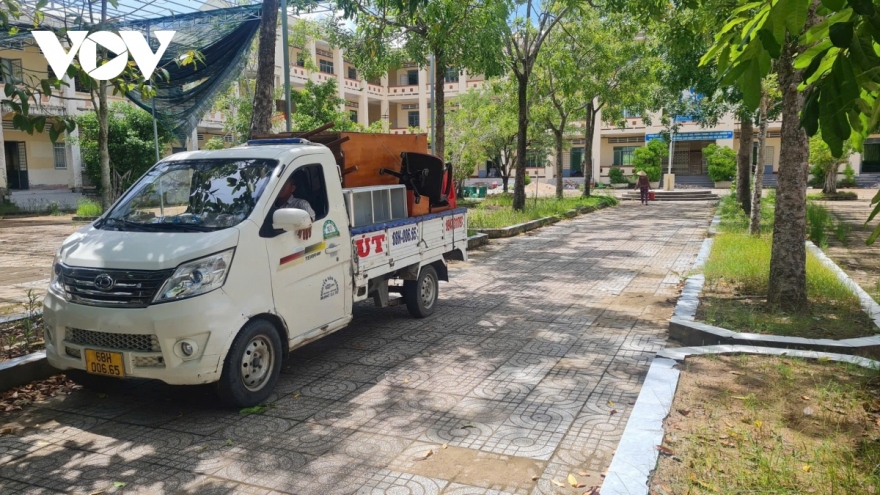 VOV.VN - Liên quan vụ việc Hiệu trưởng Trường THCS thị trấn ở Vĩnh Thuận, Kiên Giang tự ý di dời bàn ghế, cơ sở vật chất sang điểm trường mới mà không thông báo với giáo viên, phụ huynh, học sinh, ngày mai (26/8), học sinh theo học tại Trường THCS thị trấn vẫn tựu trường tại đây.