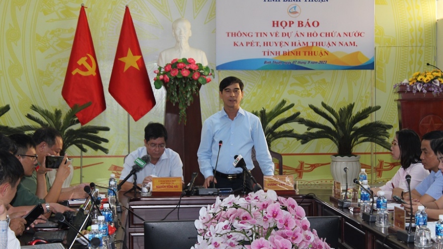 VOV.VN - Chiều nay (7/9), UBND tỉnh Bình Thuận tổ chức họp báo thông tin về chủ trương đầu tư dự án hồ chứa nước Ka Pét (dự án hồ Ka Pét) thuộc địa bàn huyện Hàm Thuận Nam.