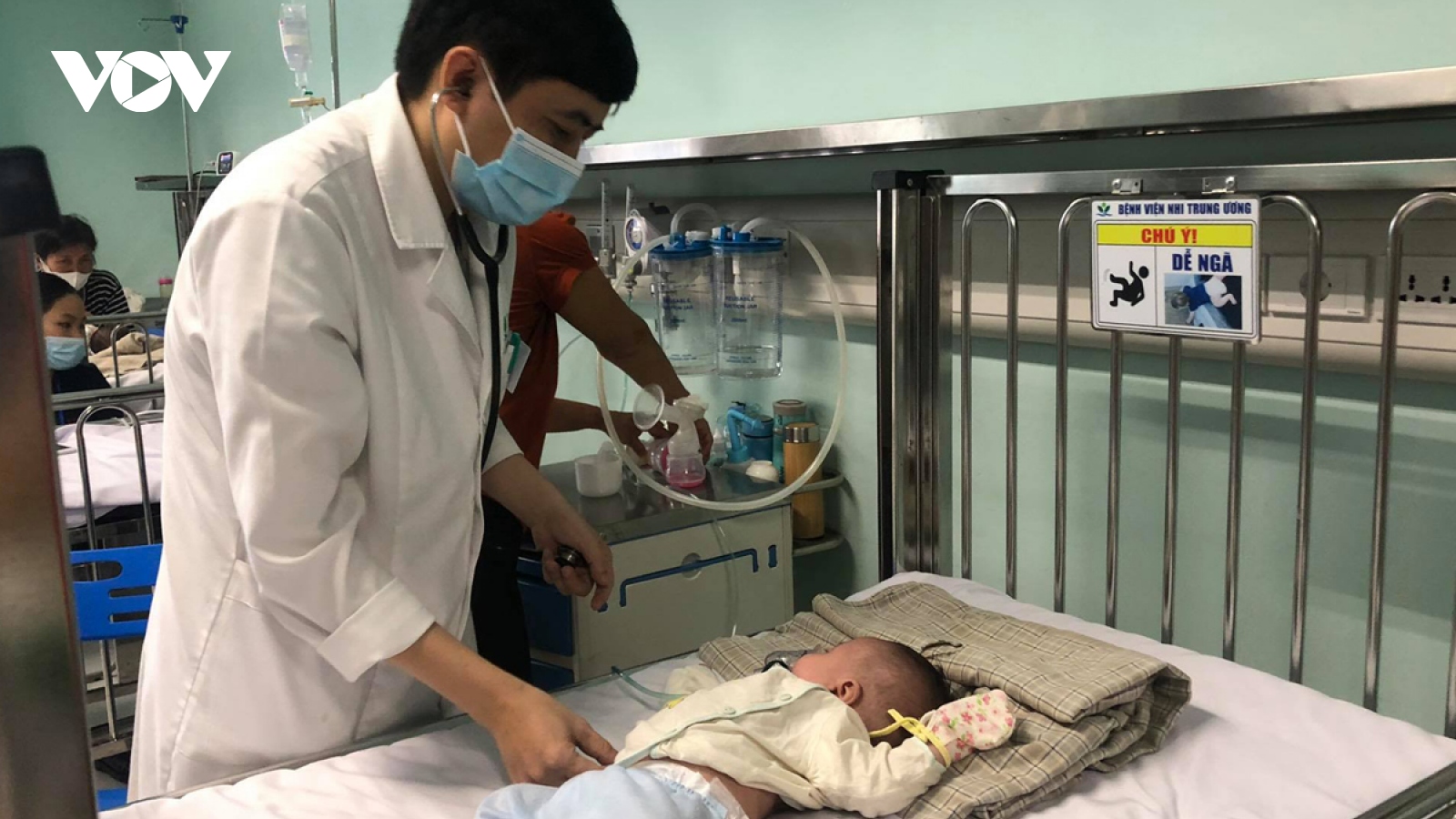 VOV.VN - Tại Bệnh viện Nhi Trung ương, số lượng trẻ em mắc virus RSV tăng gấp đôi trong một tháng trở lại đây, với khoảng 30-40 trẻ/ngày, có ngày hơn 40 em.