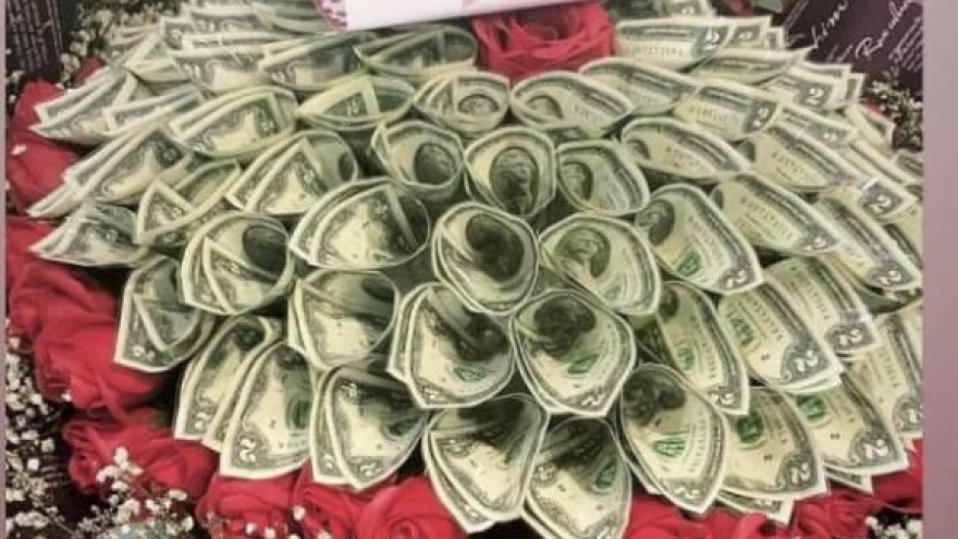 VOV.VN - Thuý Ngân đích thân đăng bức ảnh chụp bó hoa bằng tiền, kèm dòng chữ "I love you" như muốn chứng minh cho cả thế giới biết cô đang rất hạnh phúc.