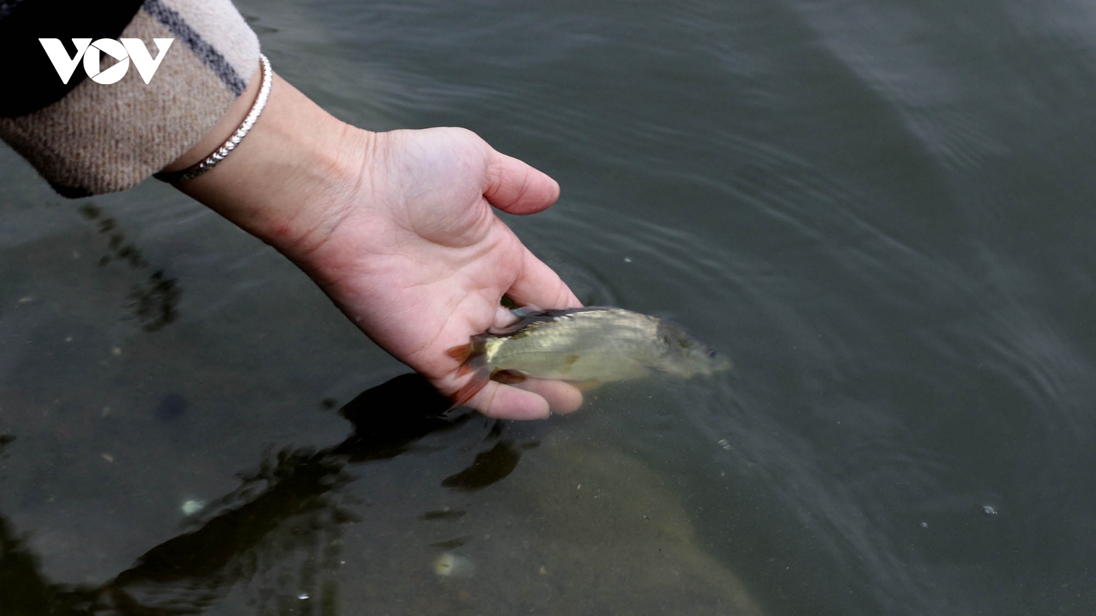 VOV.VN - Ngay từ sáng sớm, người dân đã đến các địa điểm quen thuộc ở Hà Nội như Hồ Tây, cầu Long Biên… để thả cá tiễn ông Công, ông Táo về Trời. Phần lớn người dân đã làm lễ từ ngày thứ Bảy, Chủ Nhật (ngày 20, 21 Âm lịch) nên ngày chính lễ hôm nay lượng người đi phóng sinh ít hơn.