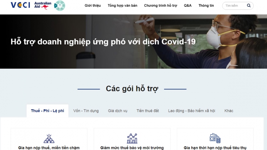 VOV.VN - Trang web do VCCI xây dựng và quản trị nhằm cung cấp thông tin về các chính sách, giải pháp hỗ trợ DN ứng phó với dịch Covid-19; giúp DN tìm kiếm, tiếp cận các ưu đãi, hỗ trợ...