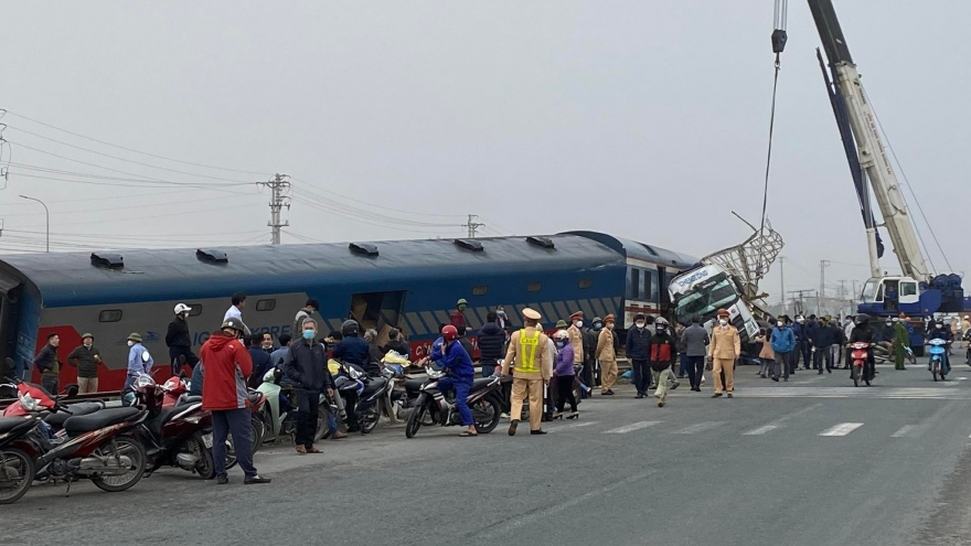 VOV.VN - Lúc rạng sáng nay (27/1), tại thị xã Duy Tiên (tỉnh Hà Nam), một xe tải chở gỗ do mất lái đã đâm vào tàu khách SE4 khiến đầu máy bị văng khỏi đoàn tàu, một toa chở khách bị giằng khỏi đường ray.