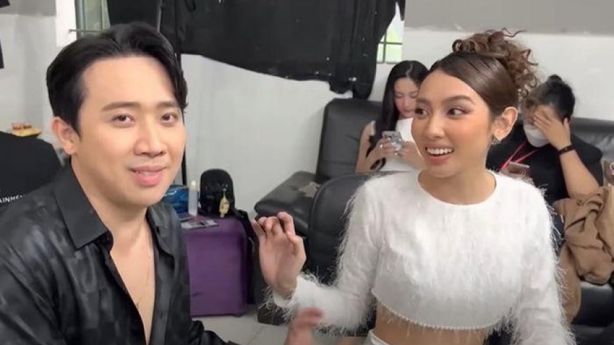 VOV.VN - MC Trấn Thành hé lộ một đoạn video ghi lại cảnh anh đang nói chuyện vui vẻ với Hoa hậu Thuỳ Tiên trong hậu trường. Các fan cho rằng, đây chính là những hình ảnh mà Thuỳ Tiên tiến hành ghi hình cho các tập tiếp theo của "Người ấy là ai".