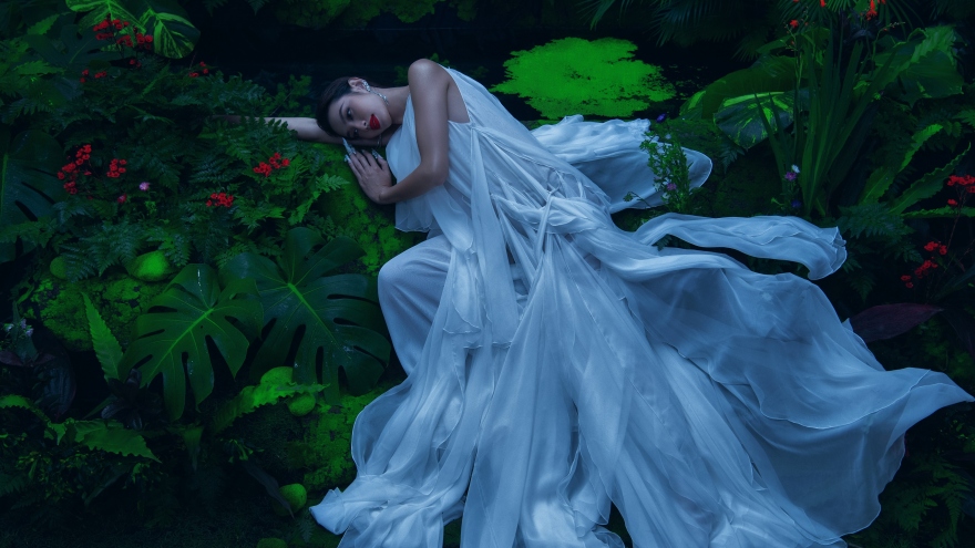 VOV.VN - Trong concept lần này, Thùy Tiên xuất hiện với thiết kế trắng tinh khôi giữa khu vườn đầy bí ẩn. Vẻ đẹp quyến rũ cùng đôi mắt sắc sảo của nàng hậu đã trở thành điểm sáng, thổi hồn cho bộ ảnh.