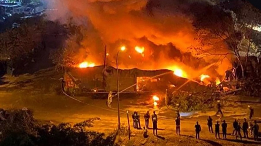 VOV.VN - Đêm 19/12, tại một nhà kho chứa lốp ô tô trên phố Nguyễn Cảnh Dị (phường Định Công, quận Hoàng Mai, Hà Nội) xảy ra cháy lớn, tạo thành cột khói cao hàng vài chục mét.