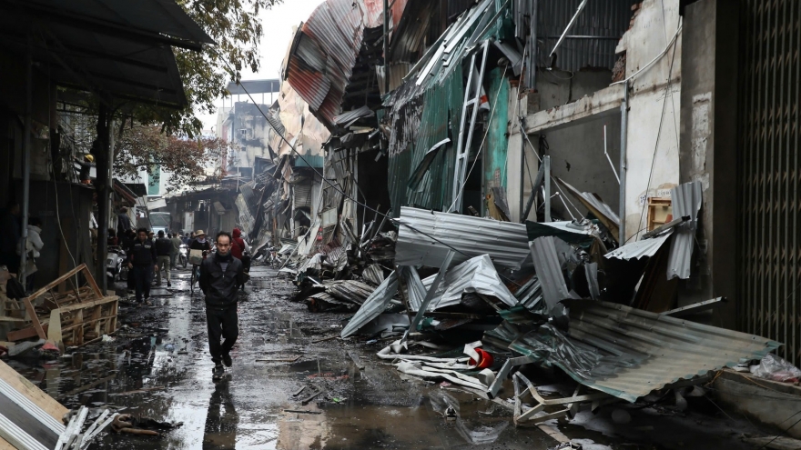 VOV.VN - Vụ cháy thiêu rụi dãy 10 nhà xưởng, cửa hàng đồ gỗ tại xã Hữu Bằng (Thạch Thất, Hà Nội), nhiều người vô cùng xót xa khi nhìn lại khối tài sản giá trị bị biến thành tro.