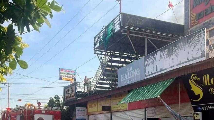 VOV.VN - Lực lượng chức năng đã kịp thời dập tắt đám cháy tại quán karaoke Huy Hoàng ở xã Đông Hưng, huyện Tiên Lãng, TP Hải Phòng. Đáng chú ý, đây là cơ sở kinh doanh đang bị đình chỉ hoạt động.