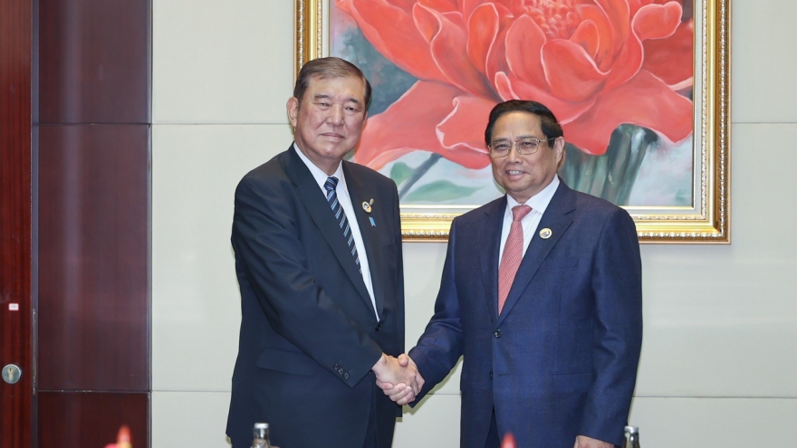 VOV.VN - Sáng nay 11/10, nhân dịp dự Hội nghị Cấp cao ASEAN lần thứ 44, 45 và các Hội nghị liên quan tại Vientiane, Lào, Thủ tướng Chính phủ Phạm Minh Chính đã hội kiến với Thủ tướng Nhật Bản Shigeru Ishiba. Đây là cuộc hội kiến đầu tiên của Thủ tướng hai nước kể từ khi ông Ishiba nhậm chức Thủ tướng Nhật Bản.