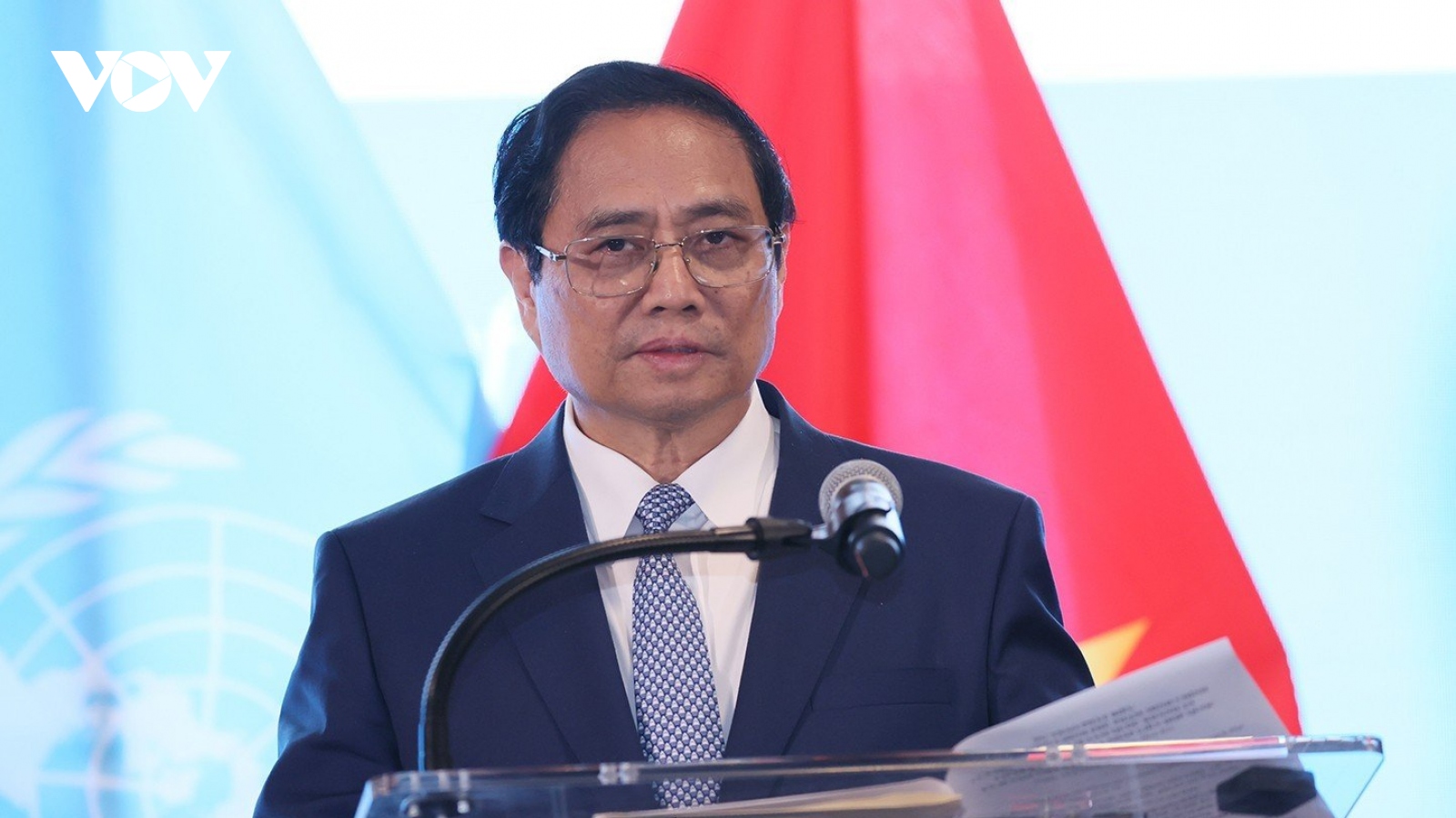 VOV.VN - Chiều 22/9 theo giờ địa phương, tại trụ sở Phái đoàn đại diện Thường trực Việt Nam tại Liên hợp quốc, Thủ tướng Chính phủ Phạm Minh Chính đã có cuộc gặp mặt thân mật với các bạn bè Hoa Kỳ nhân dịp tham dự Phiên thảo luận chung cấp cao Đại hội đồng Liên Hợp Quốc Khóa 78.