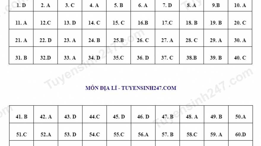 VOV.VN - Bộ GD-ĐT vừa công bố đề thi tham khảo các môn trong kỳ thi tốt nghiệp THPT 2023, thí sinh có thể tham khảo đáp án dưới đây của các môn thành phần Lịch sử, Địa lý, Giáo dục công dân thuộc bài thi Khoa học xã hội.