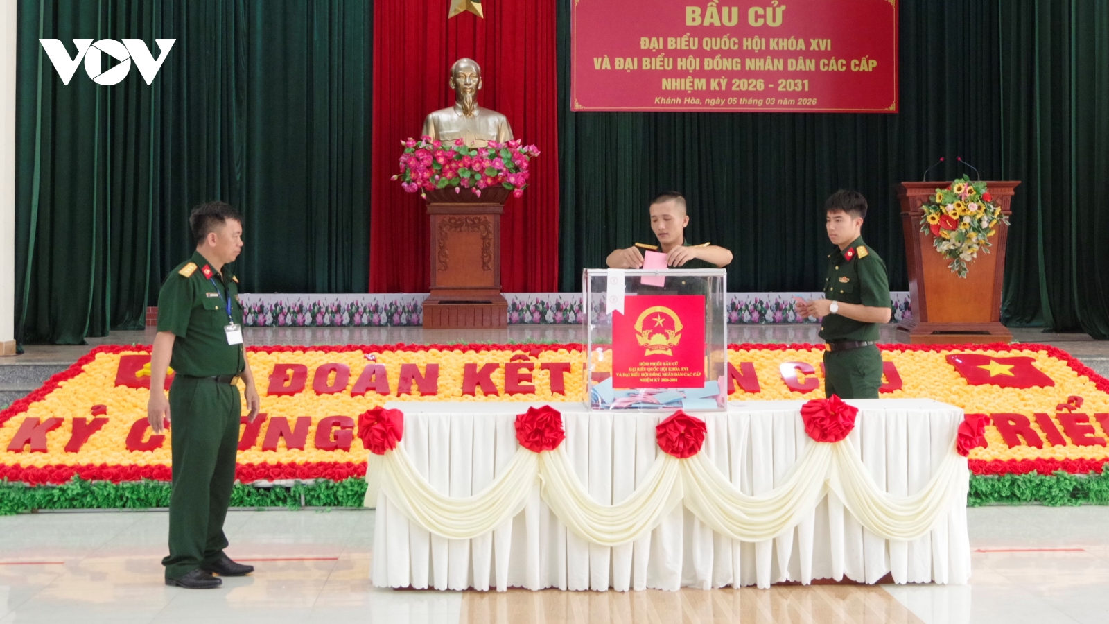 VOV.VN - Sáng 5/3, tại Lữ đoàn Đặc công Nước 5 (phường Đông Hải, tỉnh Khánh Hòa), khu vực bỏ phiếu số 4 đã tổ chức bầu cử sớm đại biểu Quốc hội khóa XVI và đại biểu HĐND các cấp nhiệm kỳ 2026-2031, với các cử tri là cán bộ, chiến sĩ thuộc Binh chủng Đặc công.