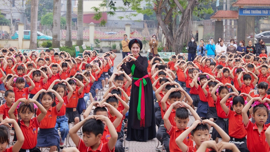 VOV.VN - Ngày 8/4, ca sĩ Hòa Minzy đã trực tiếp đến bốn điểm trường tại huyện Tiên Du (Bắc Ninh) để gặp gỡ, giao lưu và trao quà cho các em học sinh, sau cuộc thi đồng ca vừa qua.
