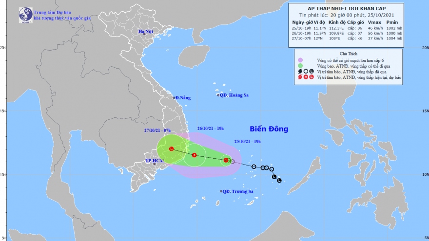 VOV.VN - Hiện áp thấp nhiệt đới đang mạnh cấp 6, giật cấp 8 cách Khánh Hòa khoảng 360km, cách Ninh Thuận khoảng 340km và có xu hướng tiếp tục mạnh thêm trong những giờ tới.