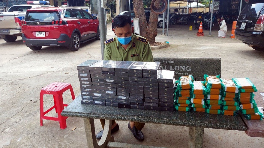 VOV.VN - 7.598 điện thoại di động các loại gồm các nhãn hiệu iPhone, Samsung chứa trong 30 bao xác rắn trên xe đang lưu thông đã bị lực lượng chức năng phát hiện, kiểm tra và thu giữ.