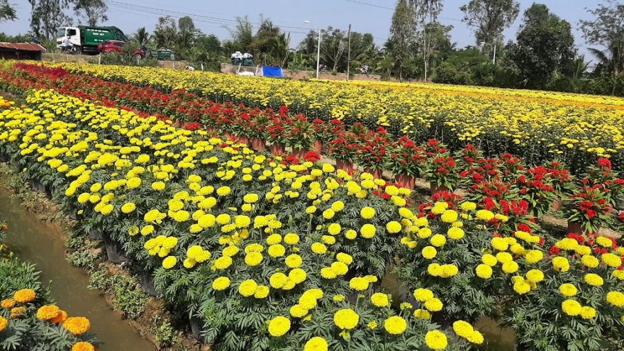 VOV.VN - Hiện nay, nông dân ở làng hoa Tết Mỹ Phong (thành phố Mỹ Tho, tỉnh Tiền Giang) rất phấn khởi vì vụ hoa Tết rất tốt tươi, đầu ra rất thuận lợi, giá tăng. Dù chịu ảnh hưởng của dịch bệnh Covid-19 nhưng dịp tết bà con ở làng hoa Tết Mỹ Phong có nguồn thu nhập đáng kể.