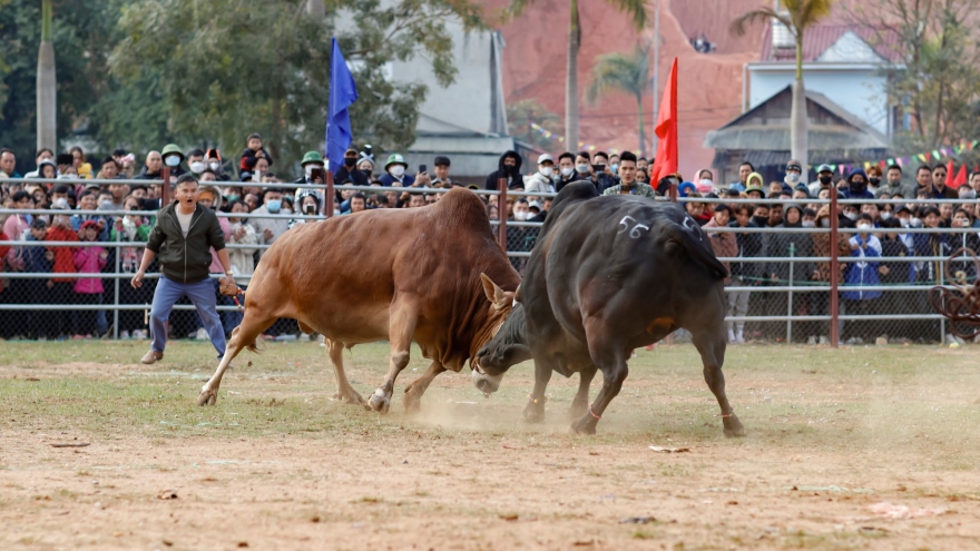 VOV.VN - Hội thi đấu bò Điện Biên Đông năm nay thu hút 74 chủ bò đến từ nhiều xã của huyện Điện Biên Đông (tỉnh Điện Biên) và nhiều xã lân cận của huyện Sông Mã (tỉnh Sơn La).