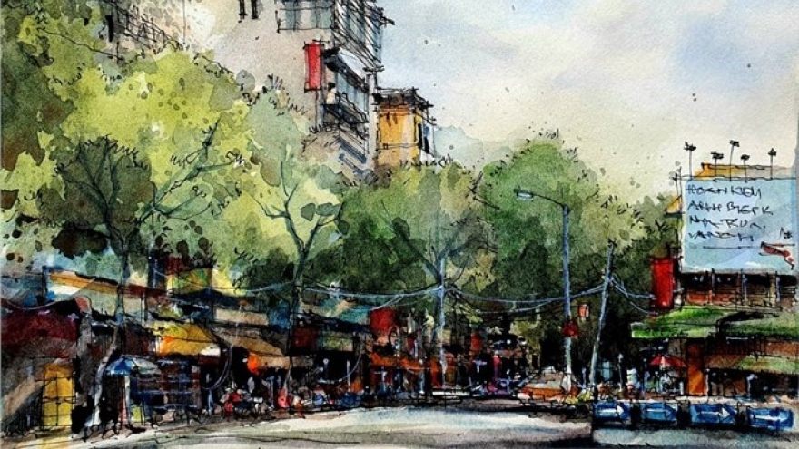 VOV.VN - Triển lãm giới thiệu hàng trăm bức tranh khắc họa những con đường, góc phố quen thuộc của Hà Nội; cùng những đóa hoa đón Sắc Xuân của nhóm họa sĩ là những kiến trúc sư tại Hà Nội.