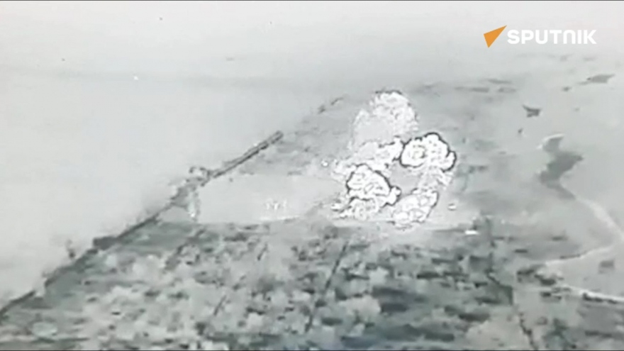 VOV.VN - Quân đội Nga ngày 12/11 công bố video cho thấy lực lượng pháo binh của nước này đã tấn công các vị trí của Ukraine ở làng Krynki, ở tả ngạn sông Dnipro sau khi các lực lượng Ukraine vượt sông và thiết lập một cứ điểm trong khu vực.