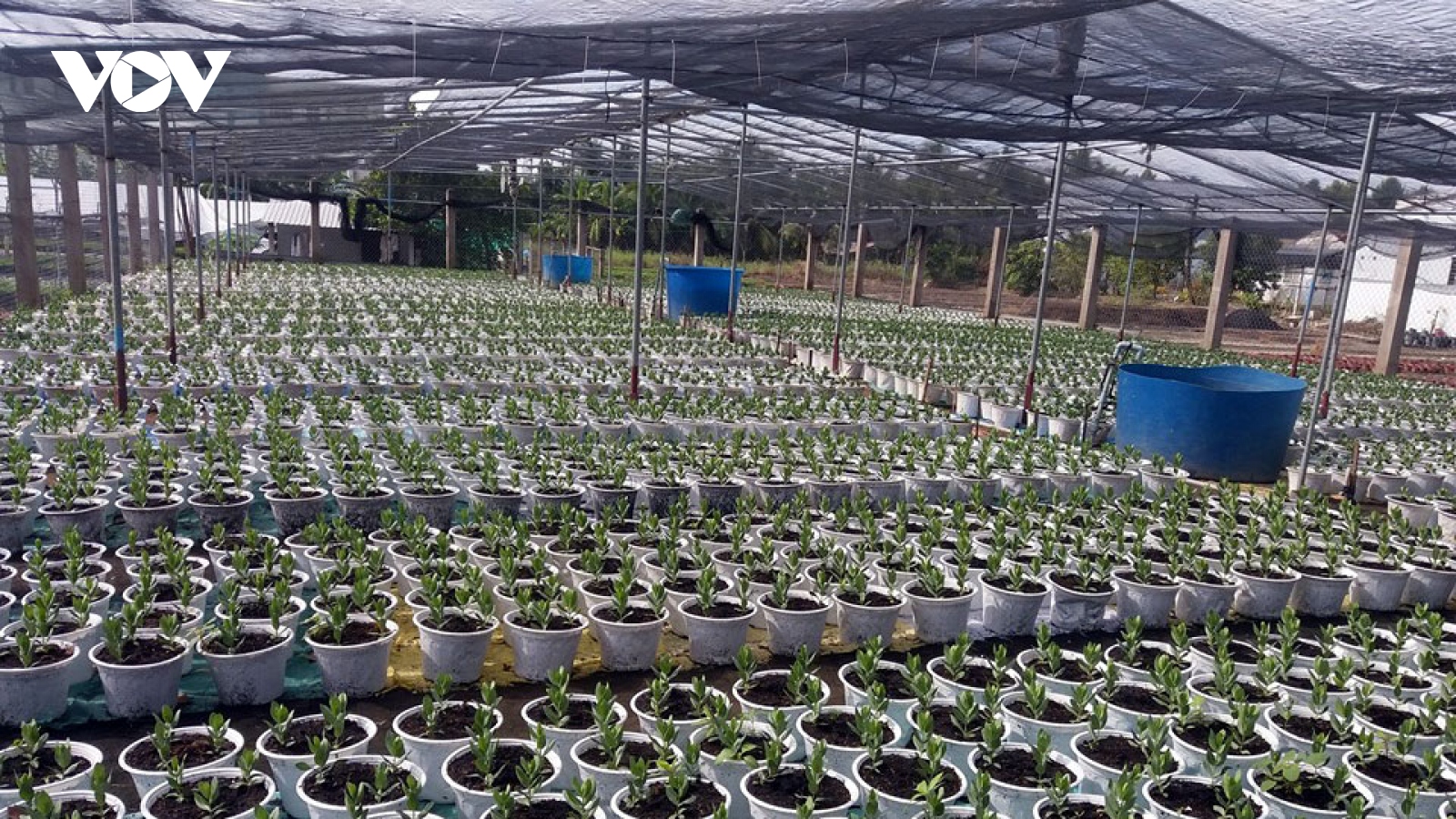 VOV.VN - Người dân trồng hoa Tết ở thành phố Mỹ Tho, tỉnh Tiền Giang hiện nay rất phấn khởi vì đầu ra rất dễ dàng. Hoa Tết trúng mùa trúng giá, tiêu thụ hết tại ruộng.