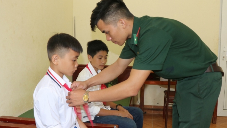 VOV.VN - Bộ đội Biên phòng tỉnh Điện Biên nhận đỡ đầu gần 100 cháu từ lớp 1 đến lớp 12, có hoàn cảnh đặc biệt khó khăn trên khu vực biên giới làm con nuôi theo chương trình “Nâng bước em tới trường” và “Con nuôi Đồn Biên phòng”. Được sự quan tâm, chăm lo, các em đều rất phấn khởi, yên tâm học tập.