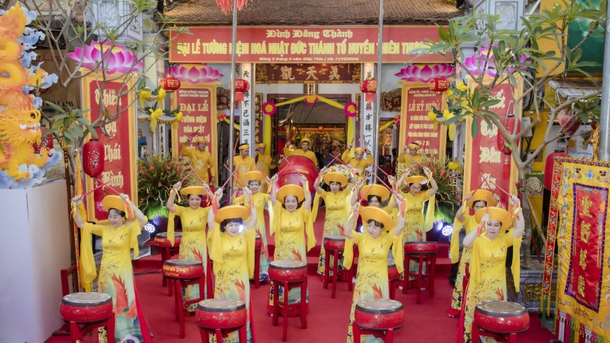 VOV.VN - Nhân dịp kỷ niệm 70 năm Ngày Giải phóng Thủ đô, 10 năm đón nhận Bằng di tích lịch sử văn hóa Đình Đông Thành, chiều 9/10, UBND phường Hàng Bồ (Hoàn Kiếm, Hà Nội) đã tổ chức Lễ dâng hương tưởng niệm hóa nhật Đức Thánh tổ Huyền Thiên Thượng Đế và cùng nhân dân thực hiện nghi lễ Rước nước từ Hoàng Thành Thăng Long về Đông Thành.