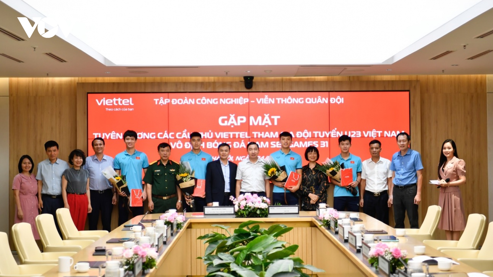 VOV.VN - 4 cầu thủ thuộc biên chế Viettel là Nguyễn Hoàng Đức, Nguyễn Thanh Bình, Nhâm Mạnh Dũng và Phan Tuấn Tài đã được Tập đoàn Công nghiệp- Viễn thông Quân đội tuyên dương sau thành tích góp công giúp U23 Việt Nam giành HCV SEA Games 31.