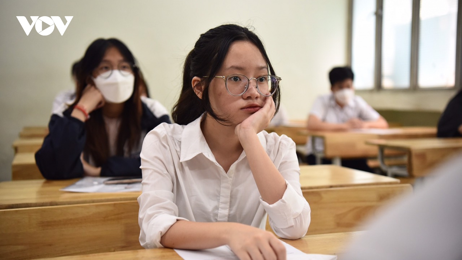 VOV.VN - Theo nhận định của giáo viên, với đề thi môn tiếng Anh trong kỳ thi tuyển sinh lớp 10 năm nay của Hà Nội, học sinh nắm chắc kiến thức cơ bản có thể làm tốt khoảng 70% bài thi. Tuy nhiên, phổ điểm năm nay có thể thấp hơn do với năm ngoái, do số lượng câu vận dụng và vận dụng cao chiếm tỉ lệ nhiều hơn.