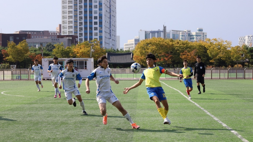 VOV.VN - Cuối tuần qua, tại Đại học Chosun, Gwangju, diễn ra Giải bóng đá sinh viên Việt Nam tại Hàn Quốc, với 6 đội bóng thi đấu và hơn 300 sinh viên, cổ động viên người Việt tham dự.