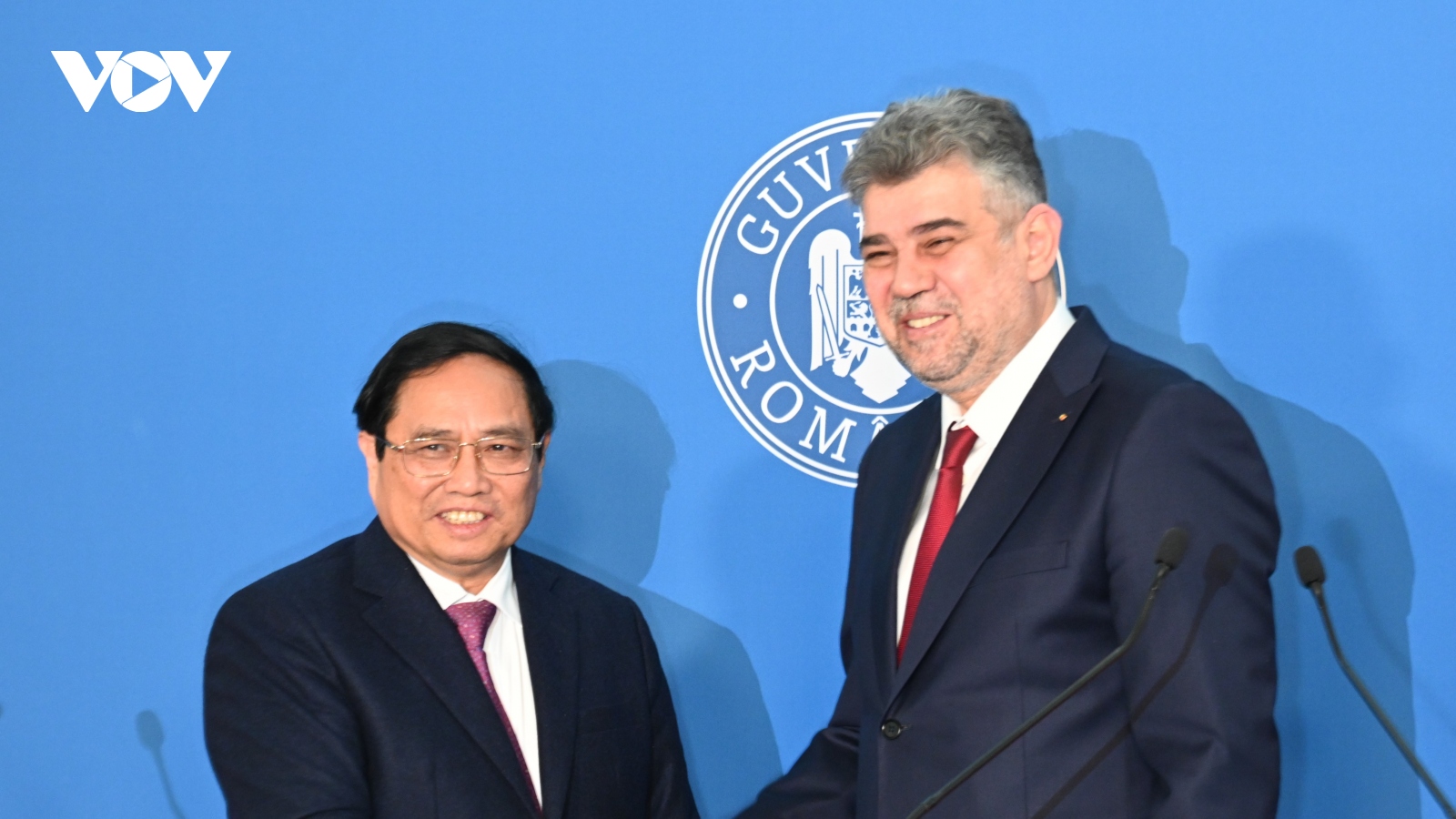 VOV.VN - Sáng 22/1 (giờ địa phương), tại thủ đô Bucharest, Romaniaa, ngay sau hội đàm thành công, Thủ tướng Phạm Minh Chính và Thủ tướng Romania Ion-Marcel Ciolacu chứng kiến lễ ký kết các văn kiện hợp tác giữa hai nước; đồng thời đã tổ chức họp báo chung để thông báo kết quả hội đàm.