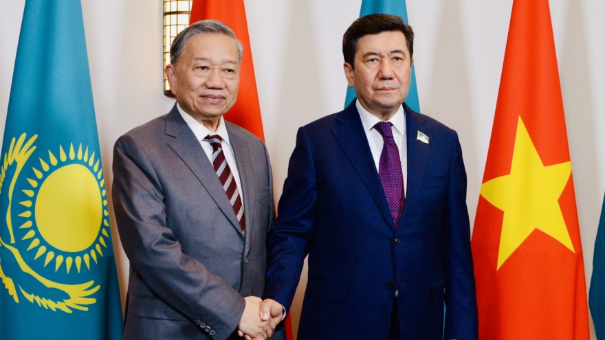 VOV.VN - Trong khuôn khổ chuyến thăm cấp Nhà nước Cộng hòa Kazakhstan, chiều ngày 6/5 (theo giờ địa phương), tại Thủ đô Astana, Tổng Bí thư Tô Lâm đã có cuộc hội kiến Chủ tịch Hạ viện Kazakhstan, kiêm Chủ tịch Đảng Amanat (cầm quyền) Yerlan Koshanov.