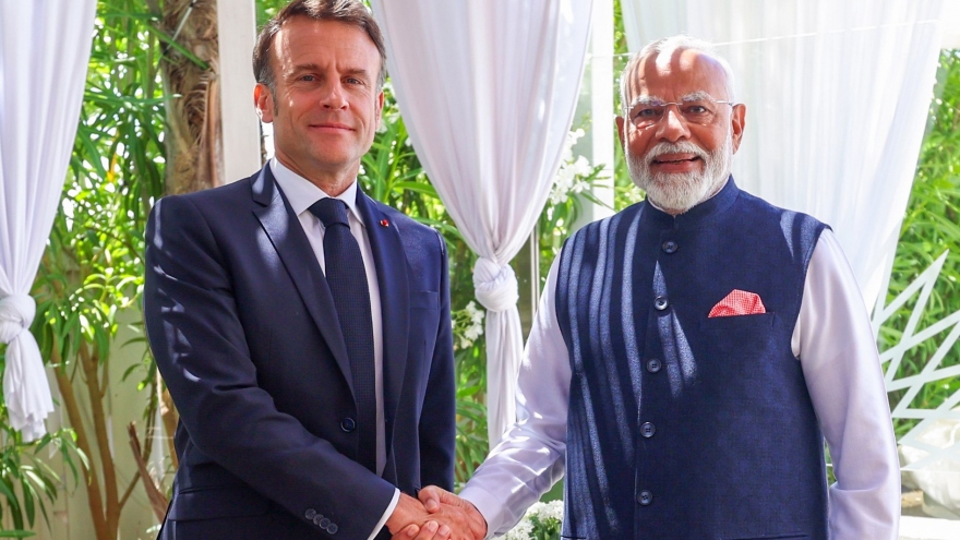 VOV.VN - Hôm 14/6, Thủ tướng Ấn Độ Narendra Modi và Tổng thống Pháp Emmanuel Macron đã nhất trí tăng cường hợp tác quốc phòng chiến lược, với trọng tâm là việc thúc đẩy sáng kiến "Sản xuất tại Ấn Độ". Cuộc gặp song phương giữa hai nhà lãnh đạo diễn ra bên lề Hội nghị thượng đỉnh G7 tại Italy, đánh dấu lần thứ 4 lãnh đạo hai bên gặp nhau trong vòng một năm.