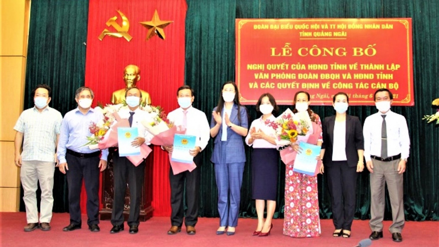 VOV.VN - Ngày 1/6, HĐND tỉnh Quảng Ngãi phối hợp với Đoàn Đại biểu Quốc hội (ĐBQH) tỉnh tổ chức Lễ công bố Nghị quyết thành lập Văn phòng Đoàn ĐBQH và HĐND tỉnh và các Quyết định về công tác cán bộ.