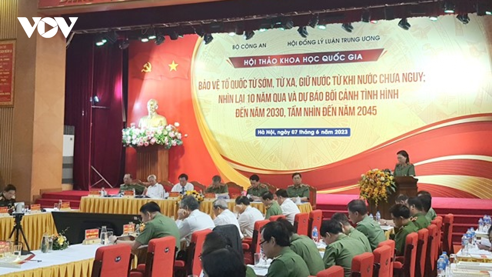 VOV.VN - Sáng 7/6, tại Hà Nội, Bộ Công an phối hợp với Hội đồng Lý luận Trung ương tổ chức hội thảo khoa học “Bảo vệ tổ quốc từ sớm, từ xa, giữ nước từ khi nước chưa lâm nguy; nhìn lại 10 năm qua và dự báo bối cảnh, tình hình đến năm 2030, tầm nhìn đến năm 2045".