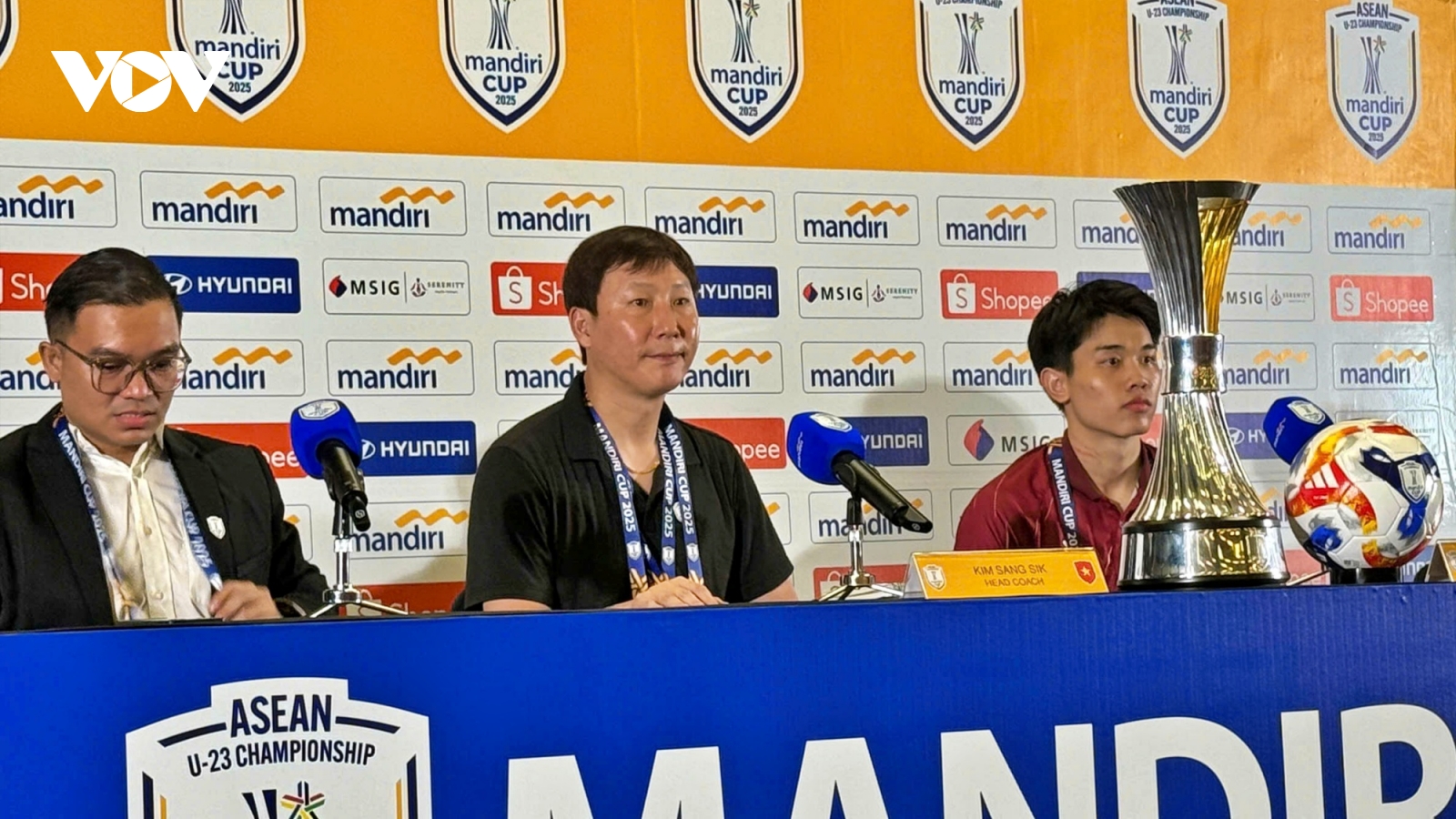 VOV.VN - HLV Kim Sang Sik xoa đầu khen Đình Bắc sau trận U22 Việt Nam 2-0 U22 Philippines, tuyên bố "không ngán" U22 Thái Lan và quyết tâm cùng toàn đội đoạt tấm HCV SEA Games 33.