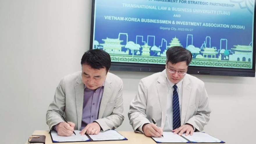 VOV.VN - Ngày 27/5, tại Hàn Quốc đã diễn ra Lễ ký kết Hợp tác Chiến lược giữa Hiệp hội Doanh nhân & Đầu tư Việt Nam-Hàn Quốc (VKBIA) và Trường Đại học Luật và Kinh doanh Quốc tế Hàn Quốc (TLBU) đào tạo Thạc sỹ các lĩnh vực luật, kinh tế, thương mại quốc tế