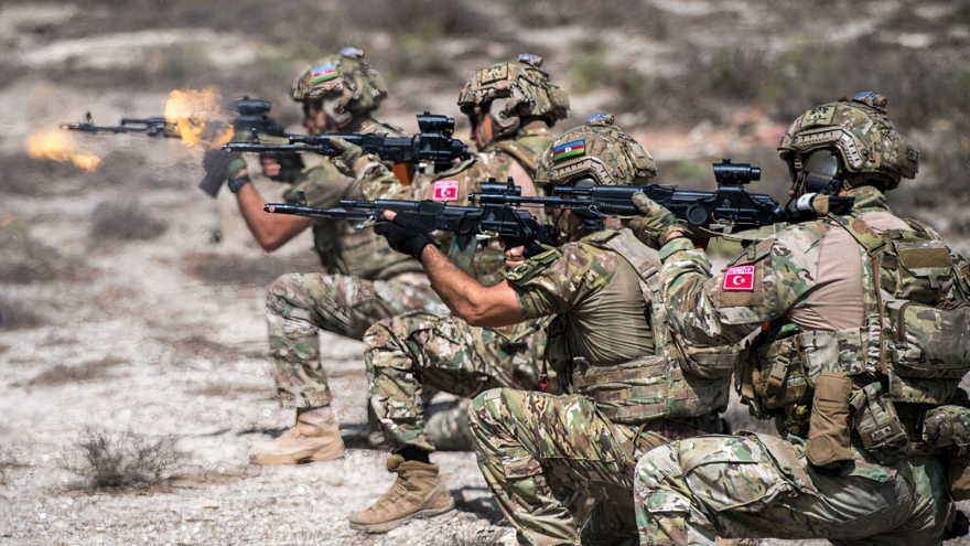 VOV.VN - Azerbaijan, Thổ Nhĩ Kỳ và Pakistan sẽ tổ chức các cuộc diễn tập quân sự chung từ ngày 12 – 20/9. Đây là cuộc diễn tập quân sự đầu tiên giữa 3 nước, diễn ra tại Azerbaijan.
