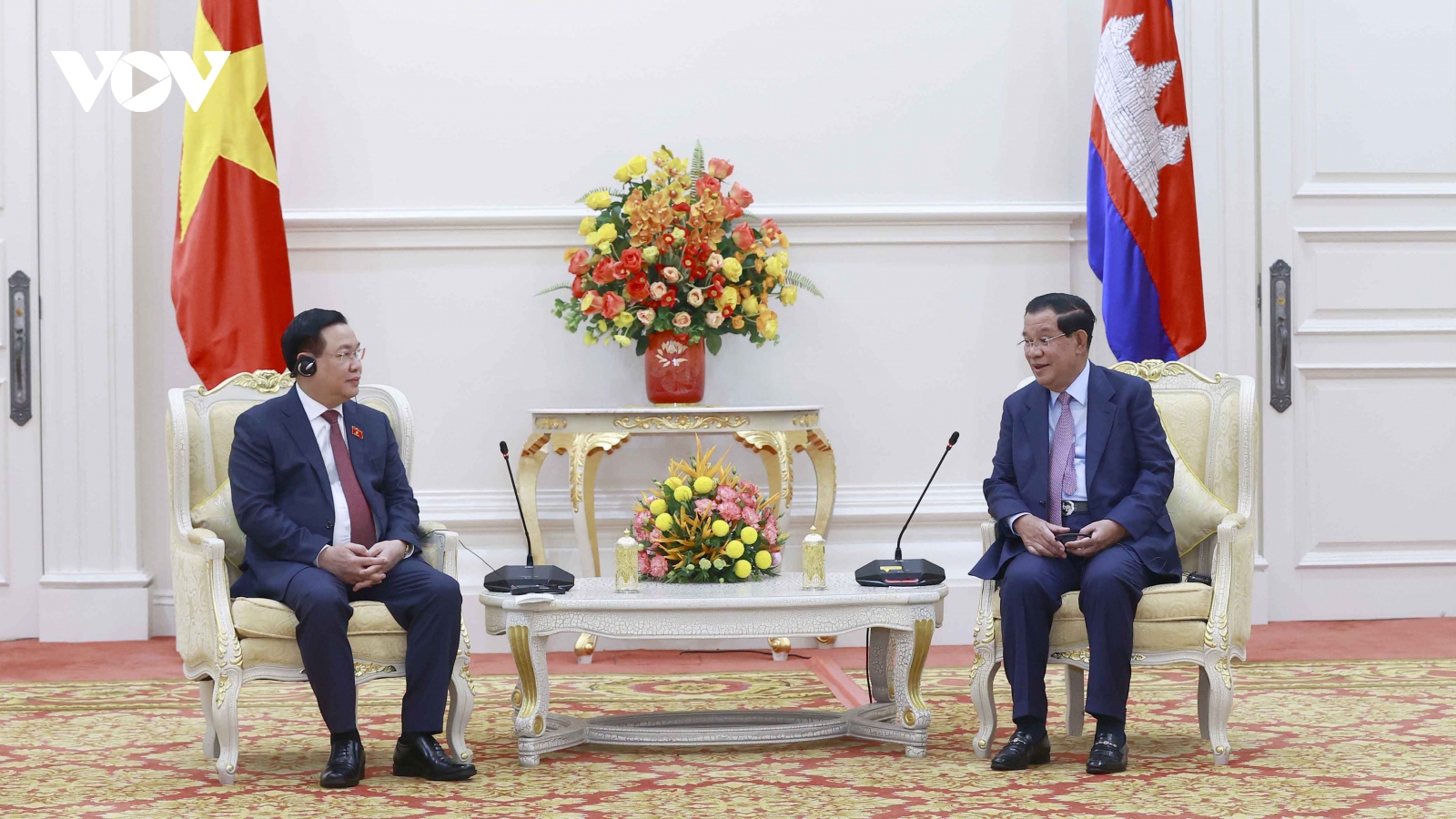 VOV.VN - Hai nhà Lãnh đạo bày tỏ hài lòng về sự phát triển tích cực của quan hệ láng giềng hữu nghị và hợp tác toàn diện Việt Nam - Campuchia thời gian qua, đặc biệt việc nhà nước và nhân dân hai nước cùng nhau tổ chức các hoạt động có ý nghĩa nhân dịp Năm Hữu nghị Việt Nam – Campuchia, Campuchia – Việt Nam 2022