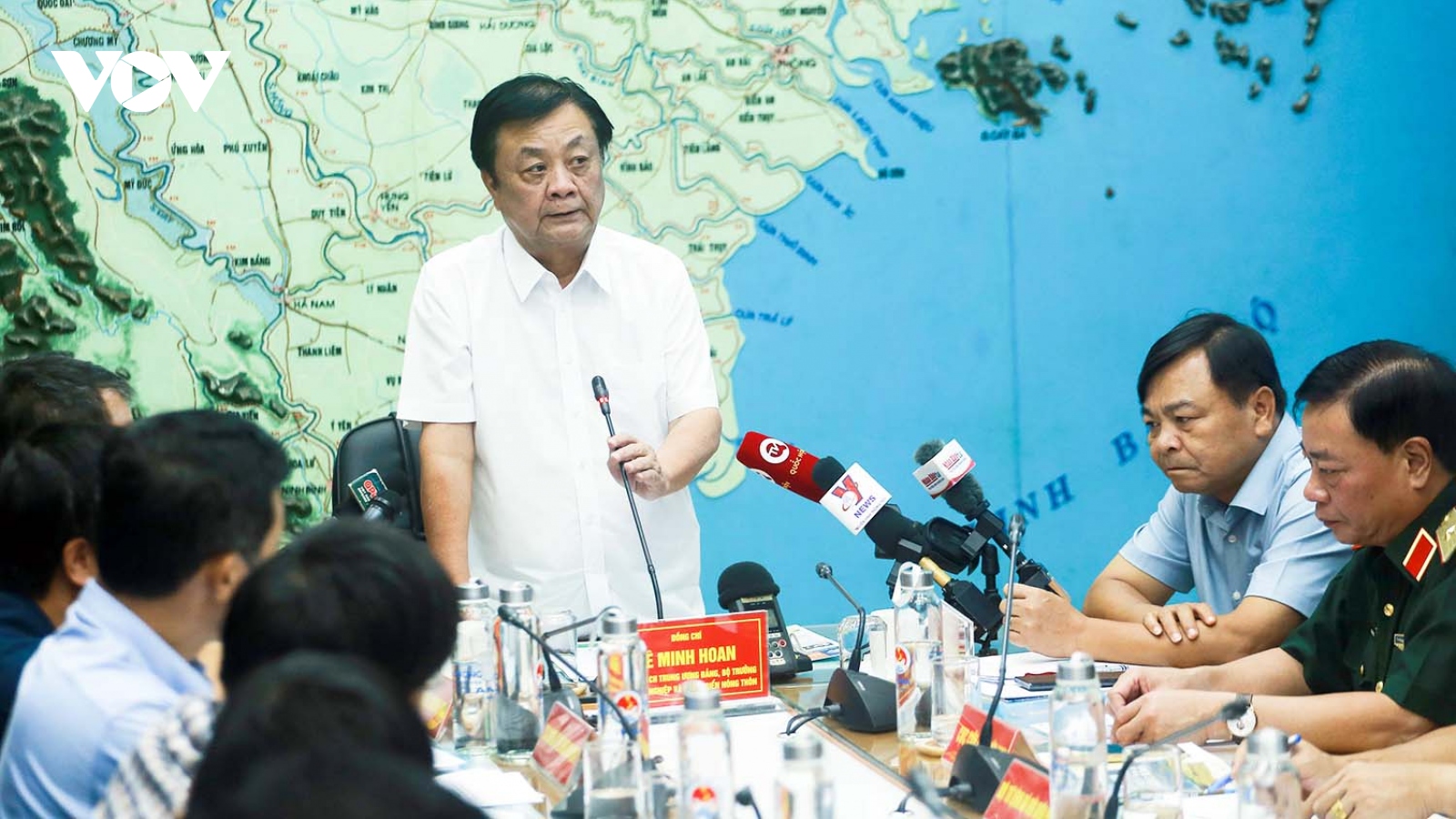 VOV.VN - Chiều 4/9, Bộ trưởng Bộ Nông nghiệp và Phát triển nông thôn tổ chức cuộc họp với các bộ, ban ngành và trực tuyến với 11 tỉnh, thành phố ven biển từ Quảng Ninh đến Nghệ An và các tỉnh, thành phố Hà Nội, Hưng Yên, Hà Nam, Hải Dương để triển khai ứng phó với bão số 3.