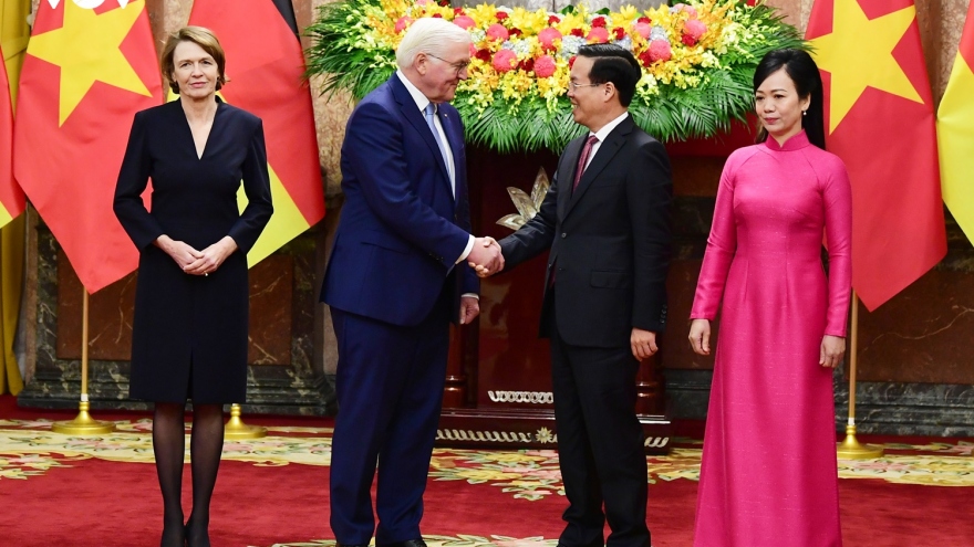 VOV.VN - Chiều 23/1 tại Phủ Chủ tịch, Chủ tịch nước Võ Văn Thưởng và Phu nhân chủ trì Lễ đón chính thức Tổng thống Đức Frank-Walter Steinmeier và Phu nhân thăm cấp Nhà nước tới Việt Nam.