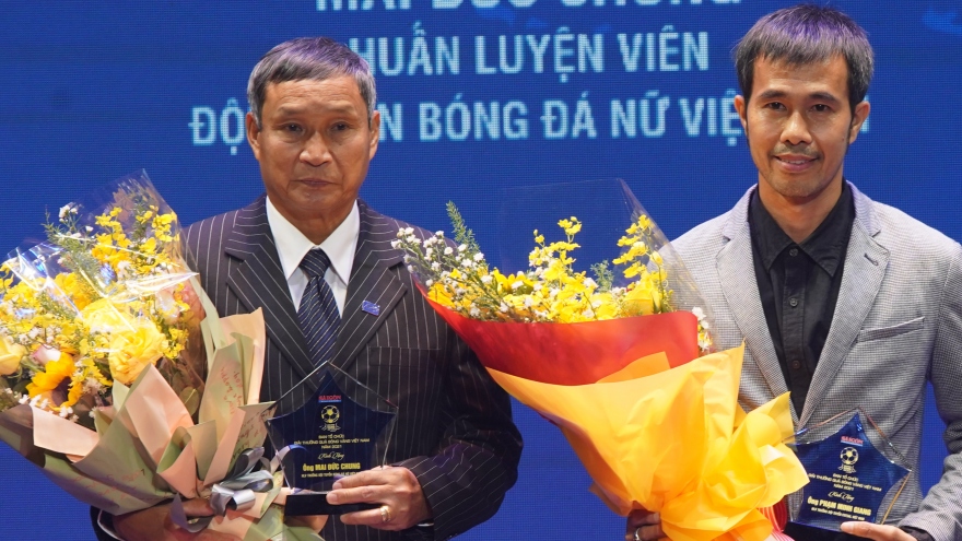 VOV.VN - HLV Park Hang Seo, Mai Đức Chung và Phạm Minh Giang được vinh danh trong Lễ trao giải Quả bóng Vàng Việt Nam 2021, khi có những đóng góp lớn mang về thành công cho bóng đá Việt Nam.