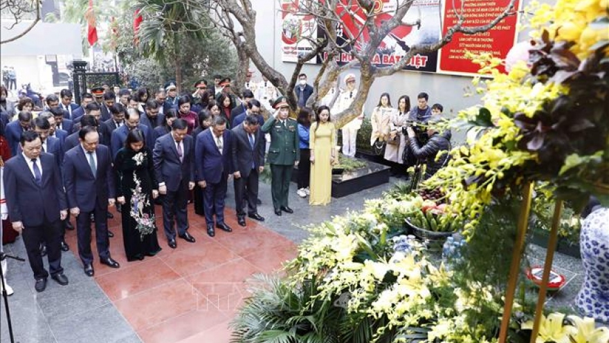 VOV.VN - Sáng 26/12, nhân kỷ niệm 50 năm chiến thắng “Hà Nội – Điện Biên Phủ trên không”, Ủy viên Bộ Chính trị, Bí thư Thành ủy Đinh Tiến Dũng cùng Đoàn đại biểu Thành ủy, HĐND, UBND, MTTQ Việt Nam TP Hà Nội đã tới đặt vòng hoa, dâng hương tại Đài tưởng niệm Khâm Thiên.