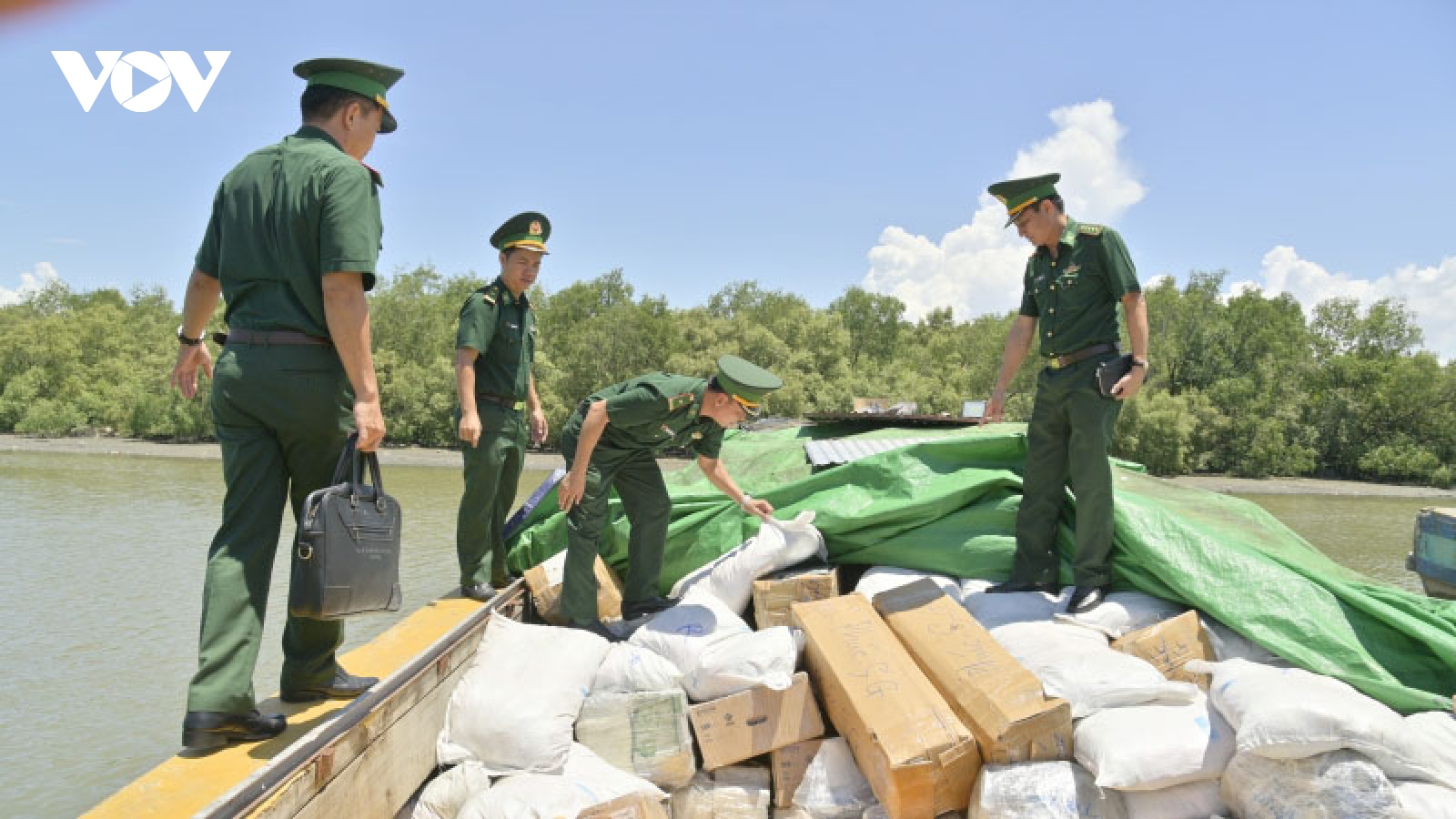 VOV.VN - Đồn Biên phòng Lình Huỳnh, Bộ đội Biên phòng tỉnh Kiên Giang vừa bắt giữ một tàu chở số lượng hàng hóa lớn, nhiều chủng loại không rõ nguồn gốc. Ban chỉ huy đồn Biên phòng Lình Huỳnh huy động hơn 20 cán bộ, chiến sĩ chuyển hàng hóa lên bờ để kiểm đếm.
