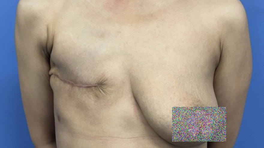VOV.VN - Bệnh nhân 45 tuổi, đã cắt hoàn toàn vú phải, bụng có đường sẹo mổ đẻ dài nên không dùng được vạt DIEP tự do, nhưng lại không muốn dùng túi độn silicone