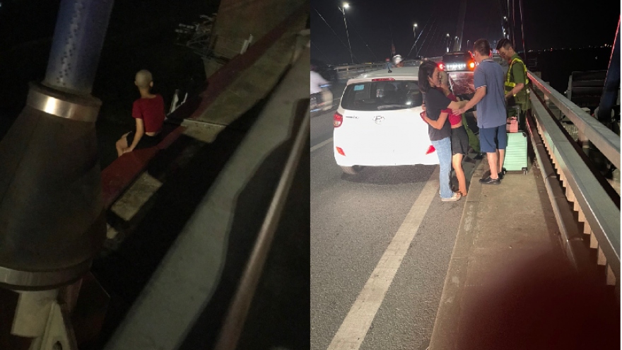 Vào 20h48 ngày 15/6, Đội cảnh sát PCCC&CNCH Công an quận Tây Hồ nhận được tin báo từ Công an Phường Phú Thượng có người leo lên lan can cầu Nhật Tân, định tự tử.