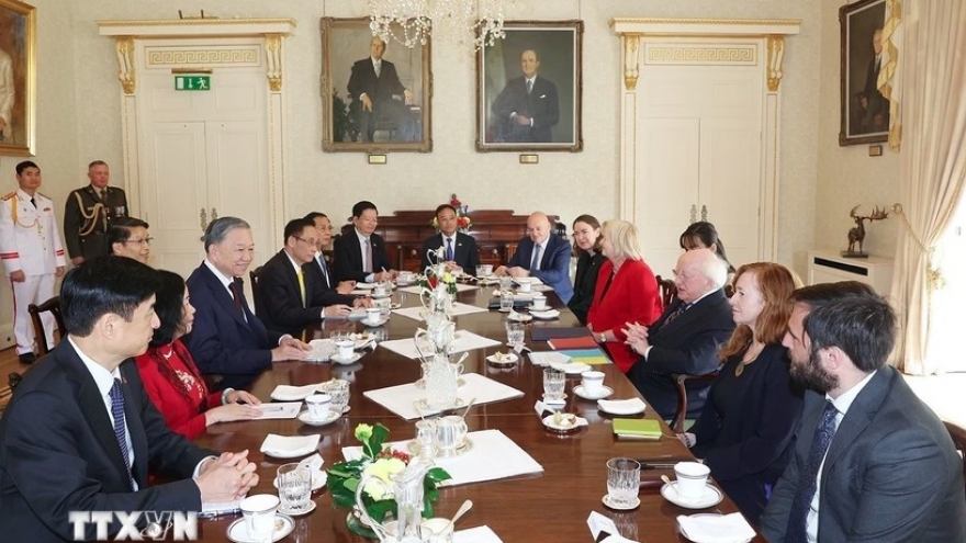 VOV.VN - Trong khuôn khổ chuyến thăm cấp Nhà nước tới Ireland, sáng 3/10 (theo giờ địa phương), tại thủ đô Dublin, Tổng Bí thư, Chủ tịch nước Tô Lâm đã hội đàm với Thủ tướng Ireland Simon Harris.
