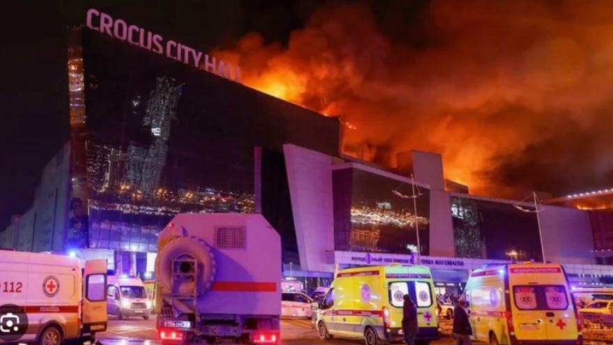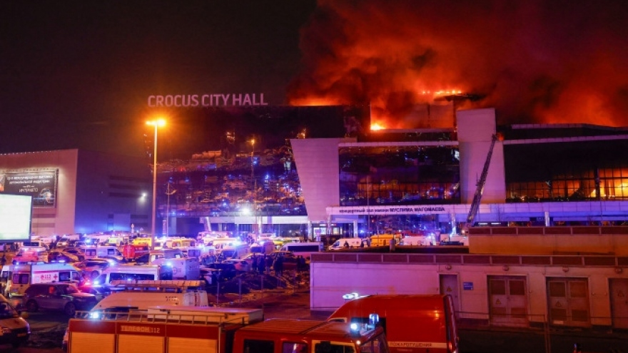 VOV.VN - Tổng thống Nga Vladimir Putin ngày 25/3 lần đầu tiên xác nhận các tay súng Hồi giáo cực đoan là thủ phạm vụ tấn công khủng bố hôm 22/3 tại trung tâm tổ chức biểu diễn Crocus City Hall ở ngoại ô thủ đô Moscow. Vụ tấn công đã khiến ít nhất 139 người thiệt mạng và gần 200 người khác bị thương.
