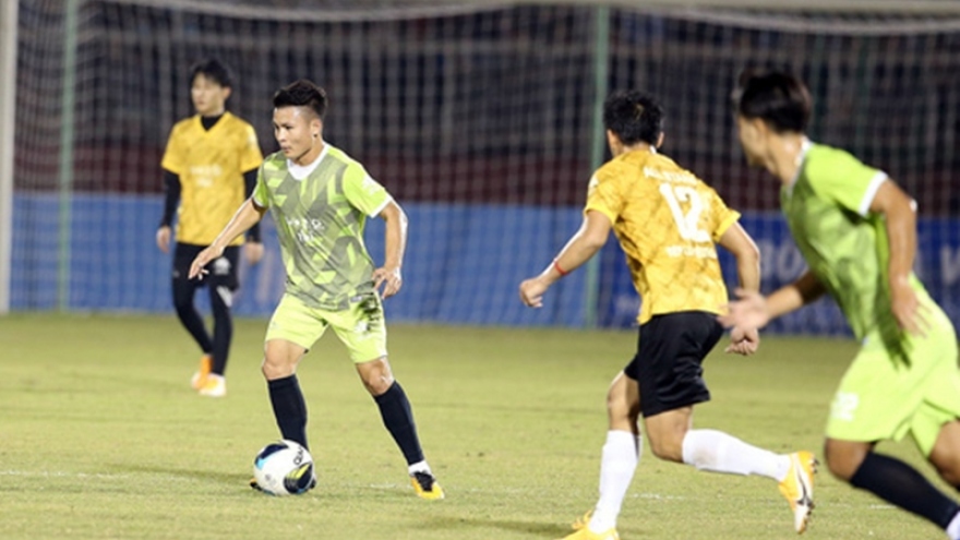 VOV.VN - Tối 11/11, trên SVĐ Thống Nhất (TP.HCM), Quang Hải (Hà Nội FC) đối đầu với Jack cùng các nghệ sĩ trong trận đấu “Tiếp lửa yêu thương” gây quỹ ủng hộ miền Trung.